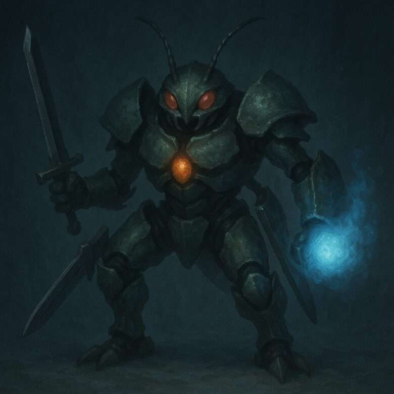 ついにギガント・フォートレスは、全火器と魔力を巻き込んだ自爆を図った。だが、すでに弱点の射程内にいたカリンは、紫電を纏う手で〈モンゴリアンデスワーム〉を構え、空間ごと中核を切断した。その一閃により自爆は未遂に終わり、モンスターの中枢は無音で細断された。
