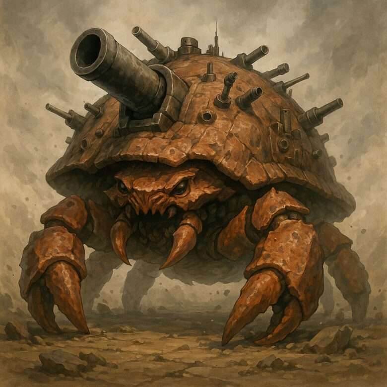 静寂を破って始まったのは、地下空間を揺るがすほどの凄まじい砲撃だった。カリンを襲ったのは、地下の太陽と見紛う光線と、濃密な弾幕による一斉攻撃であり、その発生源は巨大なヤドカリ型モンスター──ギガント・フォートレスであった。山のような巨体に多数の火器を備えたこのモンスターは、第四層そのものを兼ねる存在であり、ただのボスではなく、純粋な暴力と破壊の権化として君臨していた。